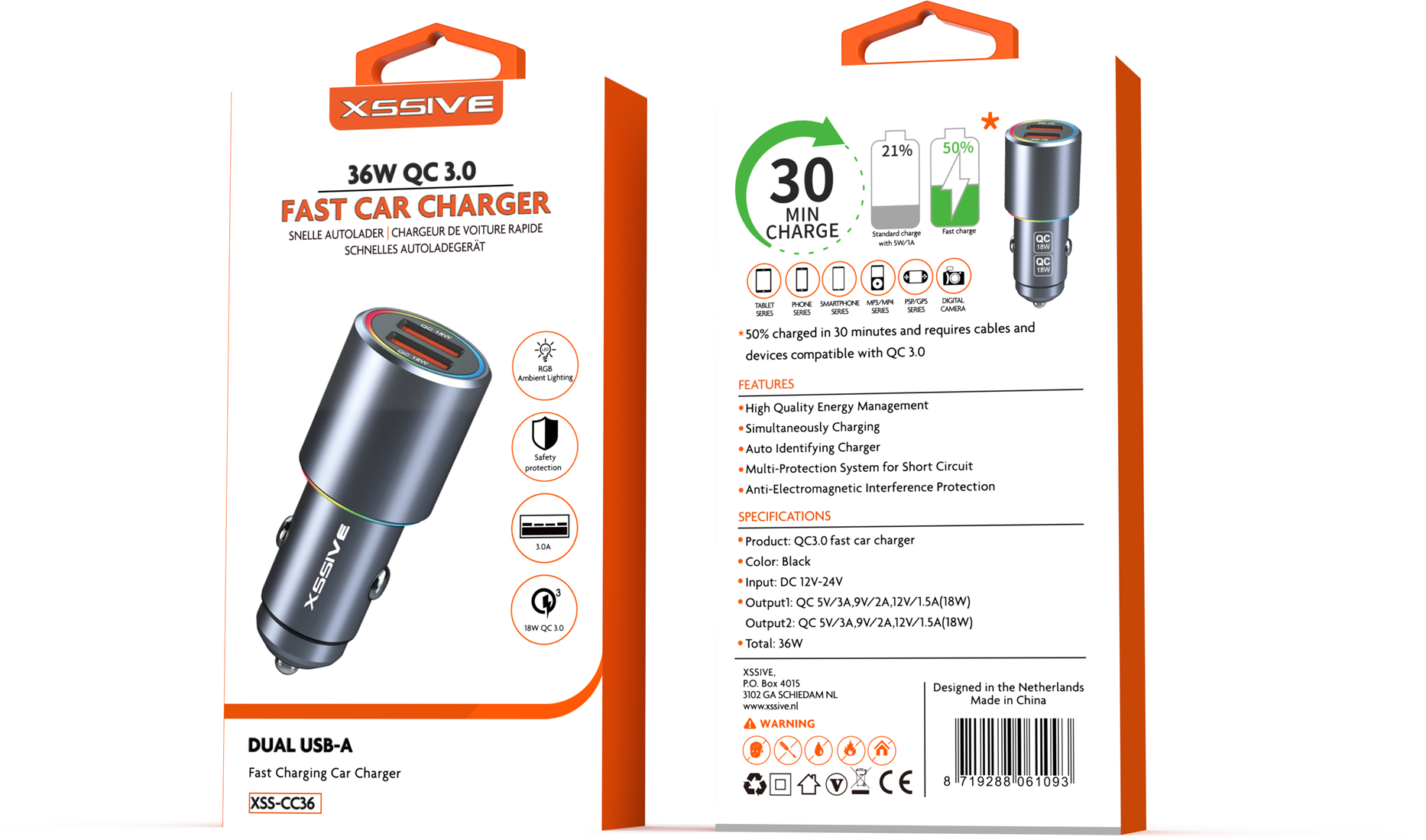 Xssive 36W QC 3.0 Fast Car Charger XSS-CC36 – Black